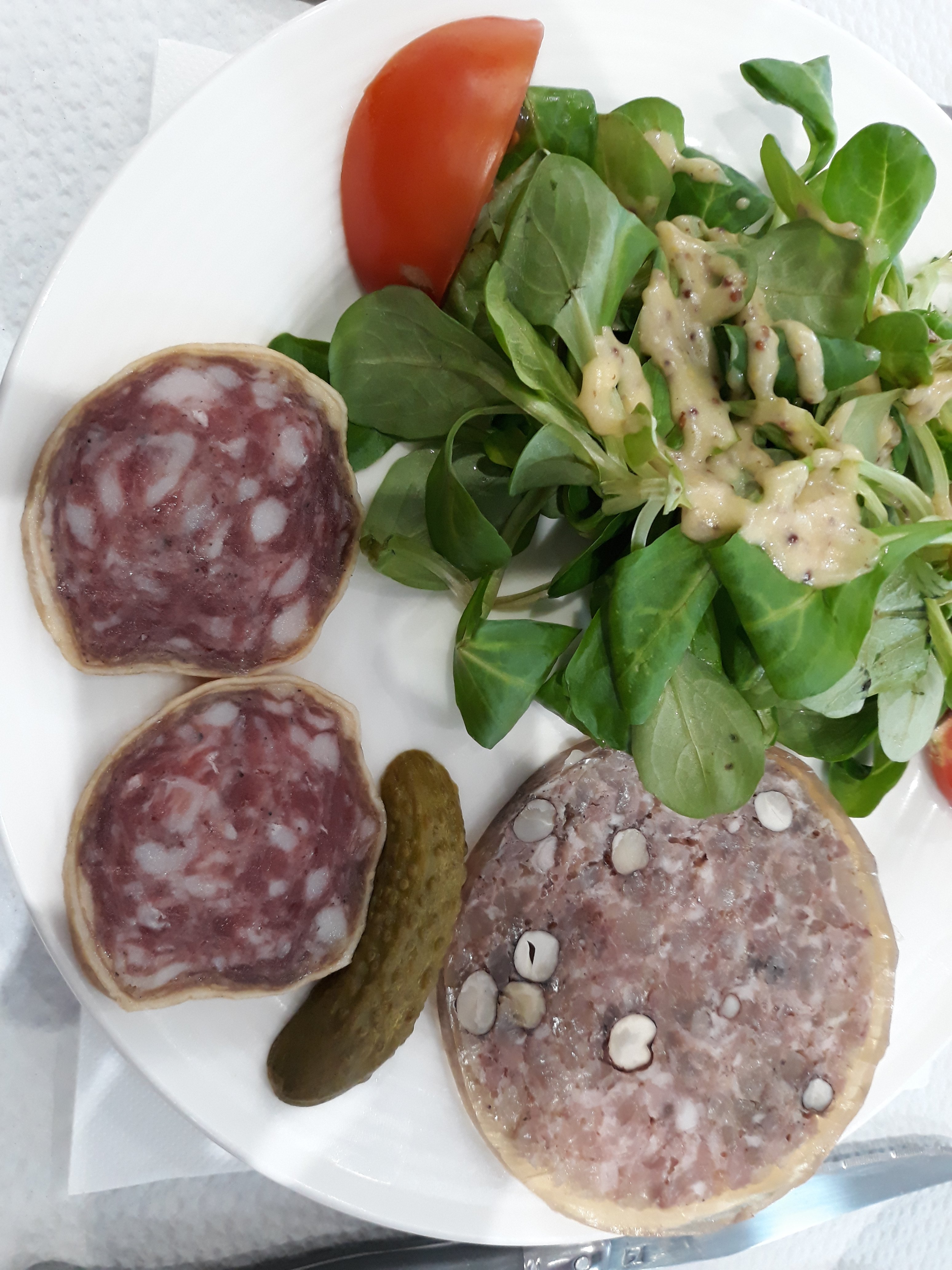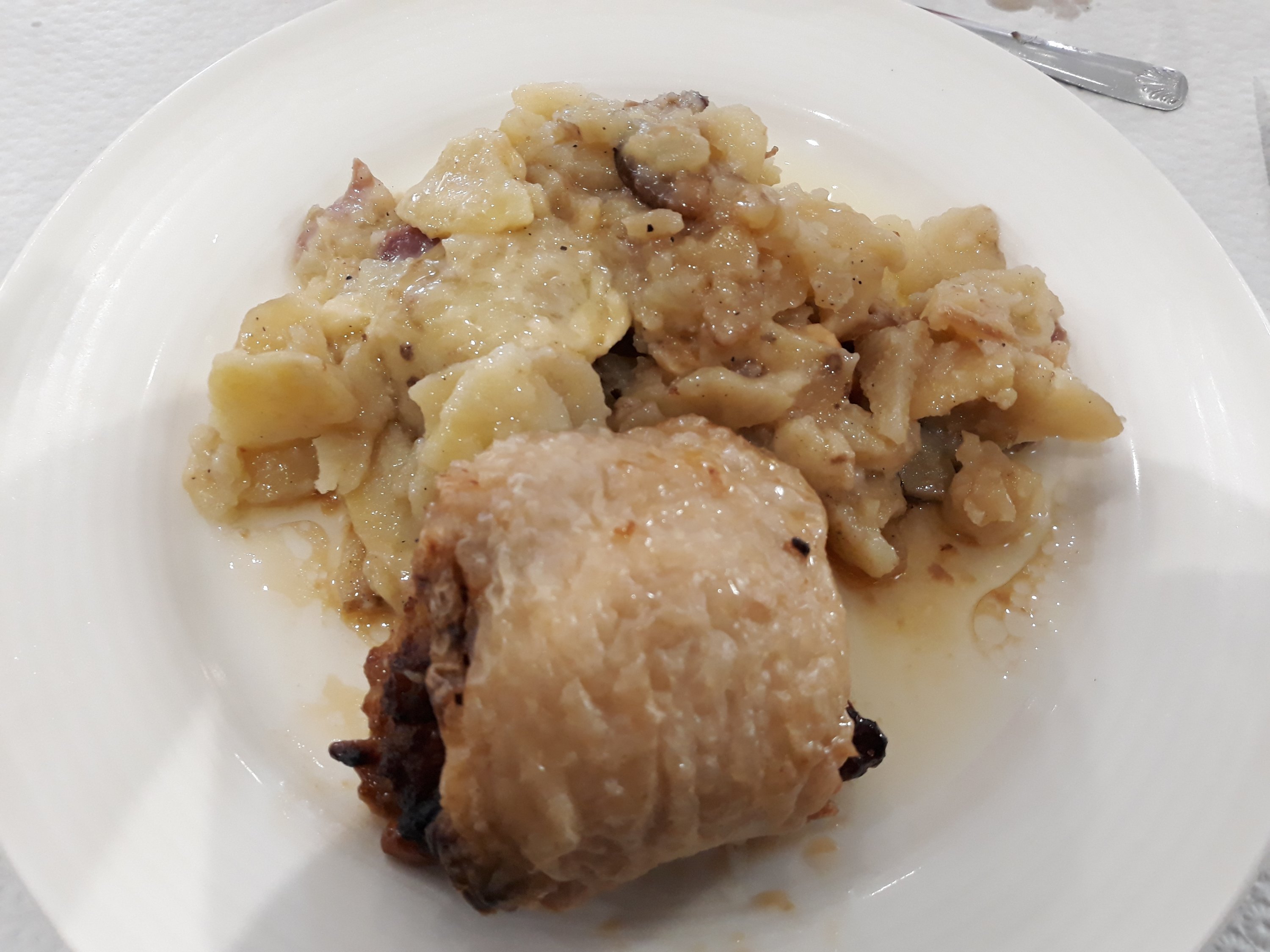 So tonight we are in a hotel with no restaurant, so stale bread, cheese, and salami for us for dinner.