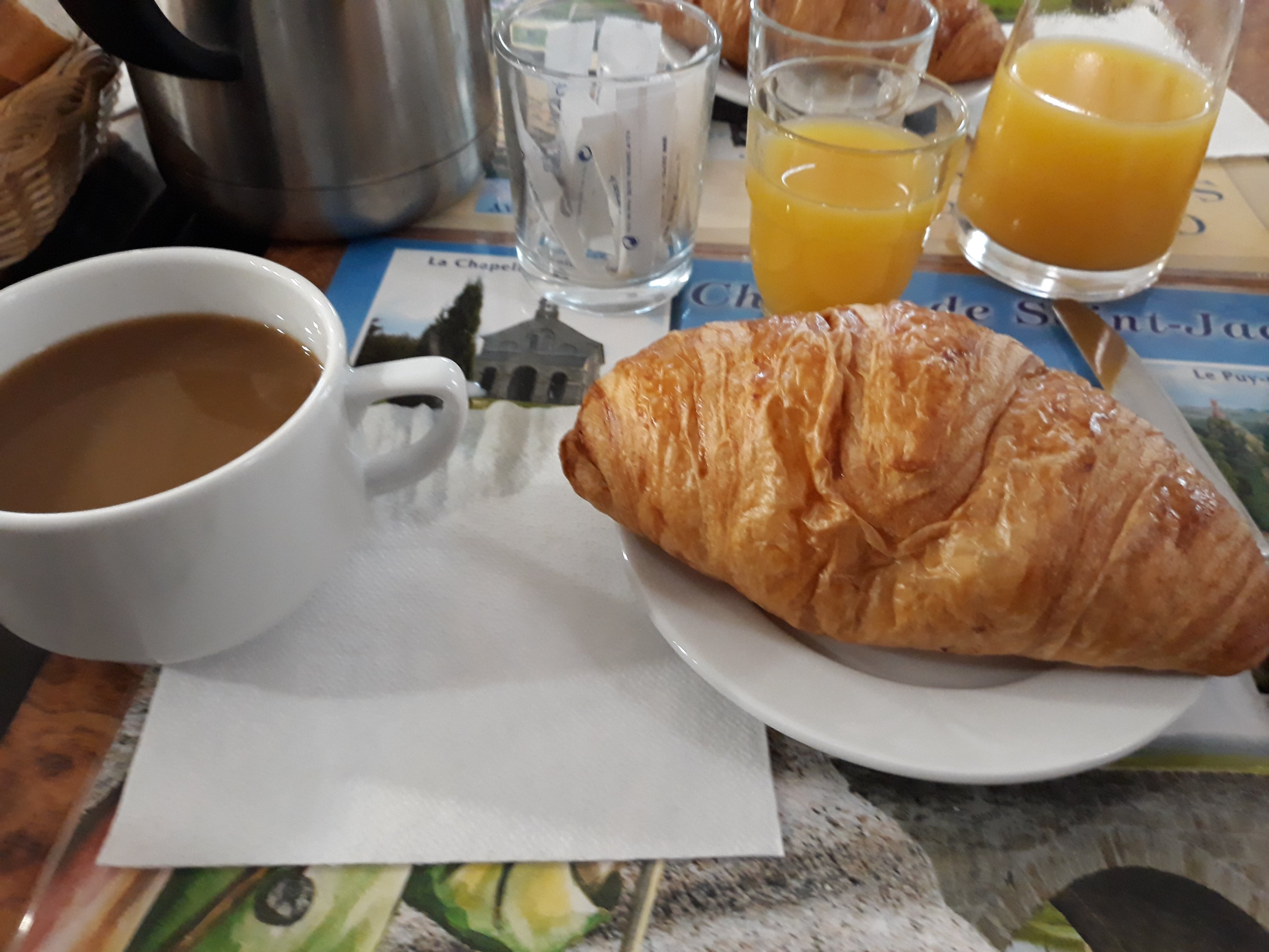 It was the longest day yet at 26km. We limped into the village of Nasbinals and headed straight for the pharmacy to get a blister solution. She told me I should pop my blister, but I’m worried about getting an infection. I got a little toe glove for it though, so we’ll see how that goes tomorrow.